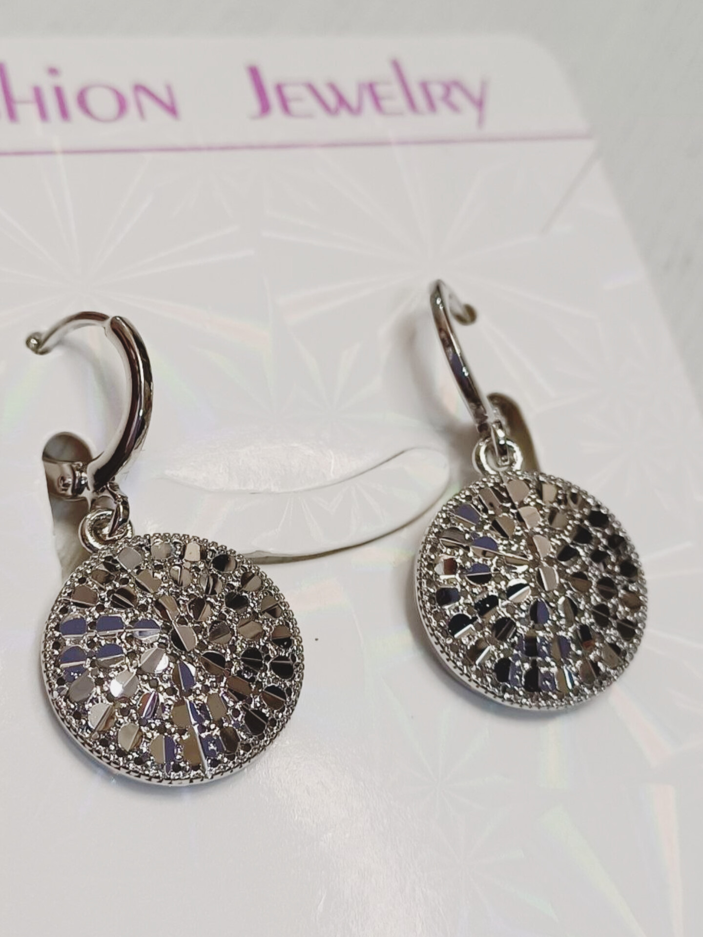 ناموجودگوشواره زنانه طرح گرد نقرهای استیل تراش خورده