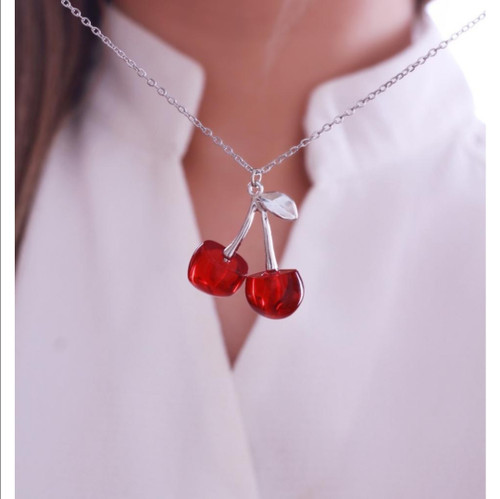 گردنبند زنانه طرح گیلاس مدل جواهری استیل نقره ای
