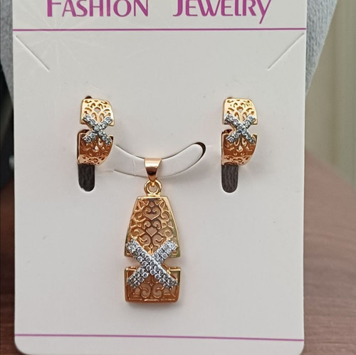 ست گردنبند و گوشواره زنانه مدل تیفانی طلایی نگین دار کریستالی استیل با کیفیت 316