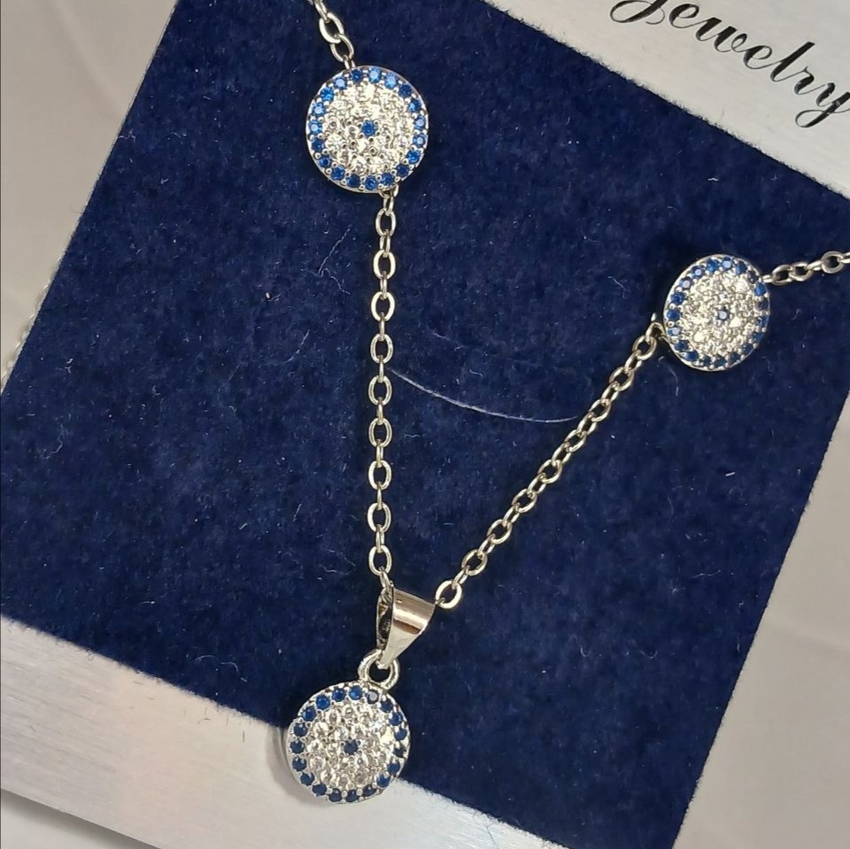 نیم ست چشم نظر نقره ای استیل نگین دار جواهر نشان بادوام