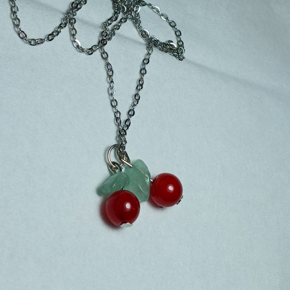 گردنبند زنانه طرح گیلاس مدل جواهری استیل نقره ای