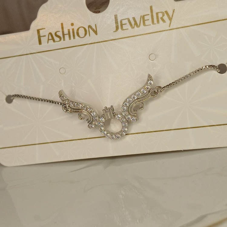 دستبند زنانه طرح بال و انگشتر رنگ نقره ای نگین دار جنس استیل با کیفیت ضد حساسیت و رنگ ثابت
