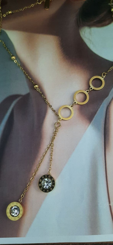 گردنبند زنانه طرح طلا مدل دو لاین آویزی رنگ طلایی جنس استیل با کیفیت ضد حساسیت و رنگ ثابت شیک و سبک طراحی ظریف و براق است