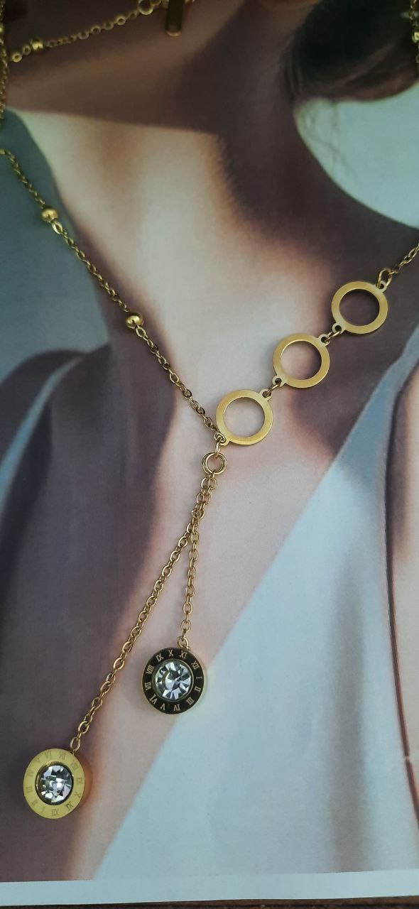 گردنبند زنانه طرح طلا مدل دو لاین آویزی رنگ طلایی نگین دار کریستالی: جنس استیل با کیفیت ضد حساسیت و رنگ ثابت شیک و سبک شیک و سبک ظریف و براق