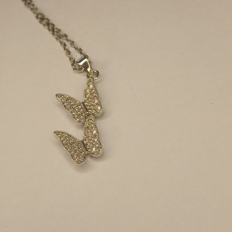 گردنبند زنانه طرح پروانه رنگ نقره ای نگین دار: جنس استیل با کیفیت ضد حساسیت و رنگ ثابت شیک و سبک ظریف و براق