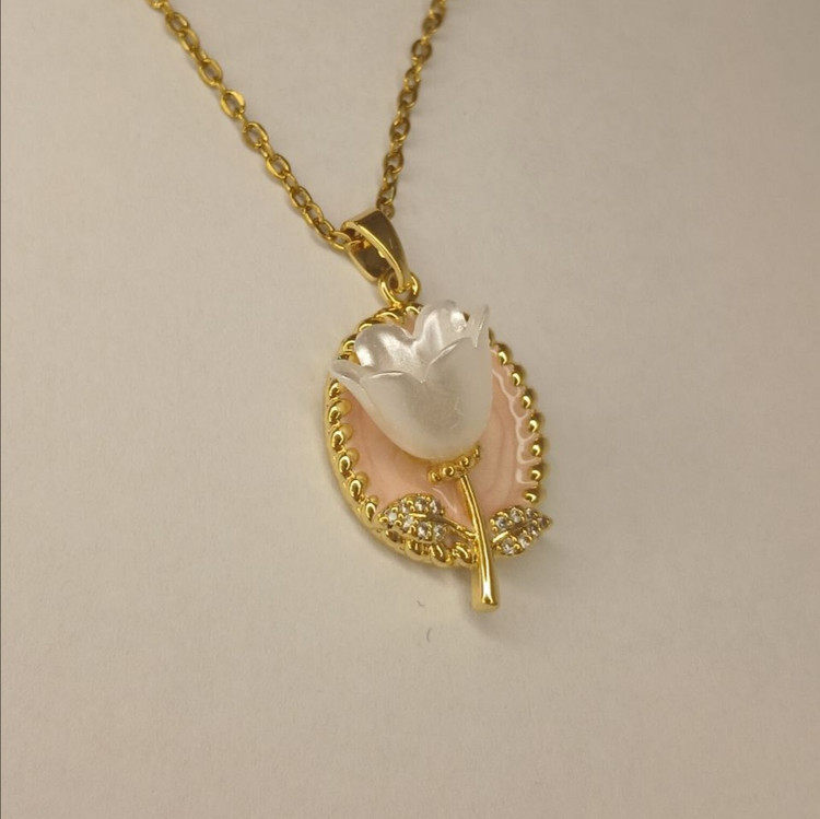 گردنبند زنانه طرح گل رنگ طلایی جنس استیل با کیفیت ضد حساسیت و رنگ ثابت شیک و سبک طراحی ظریف و براق است