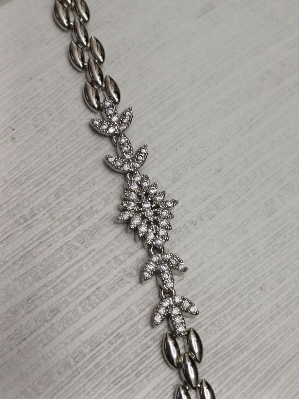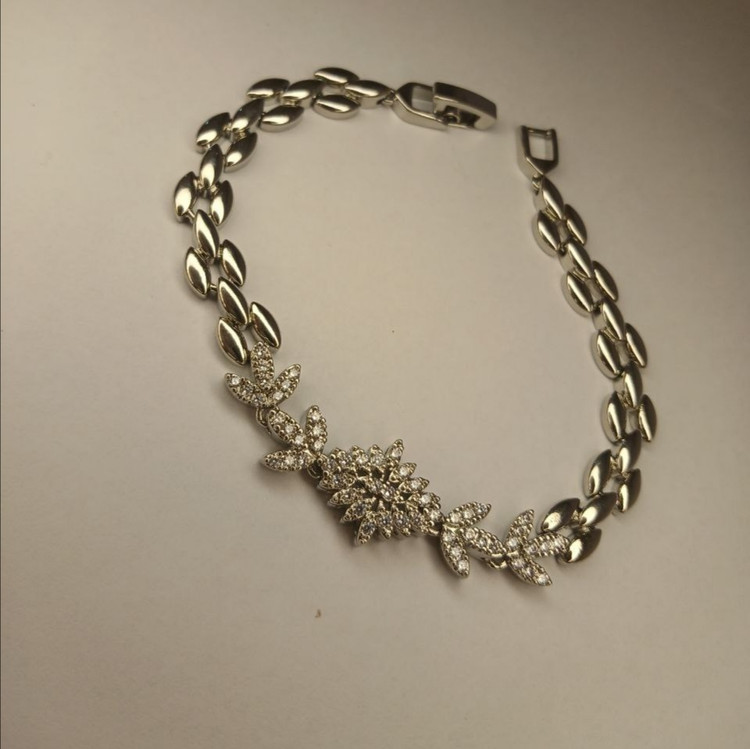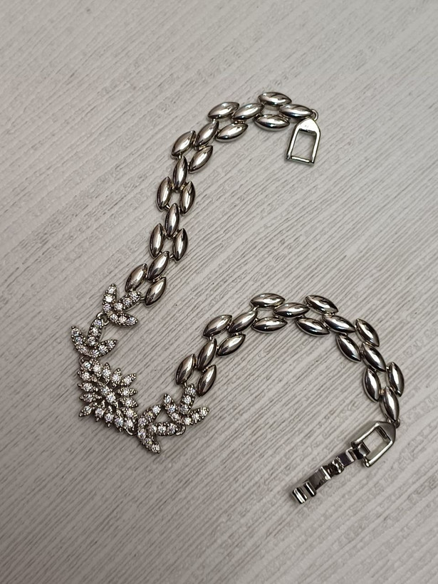 دستبند زنانه رنگ نقره ای نگین دار کریستالی: جنس استیل با کیفیت ضد حساسیت و رنگ ثابت شیک و سبک ظریف و براق