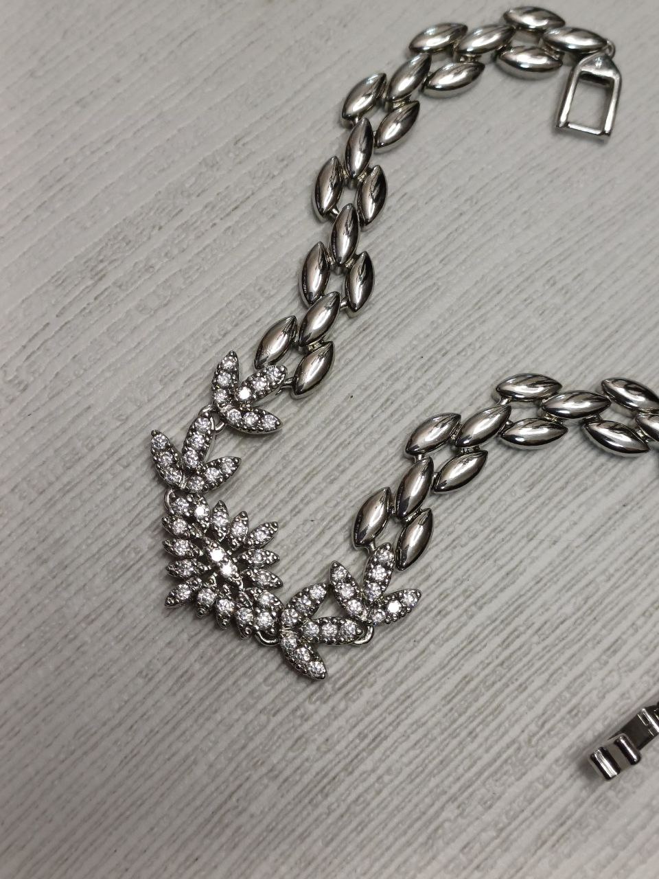 دستبند زنانه رنگ نقره ای نگین دار کریستالی: جنس استیل با کیفیت ضد حساسیت و رنگ ثابت شیک و سبک ظریف و براق
