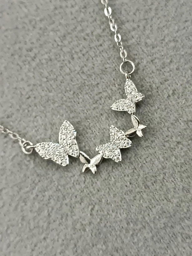 گردنبند زنانه طرح پروانه رنگ نقره ای نگین دار: جنس استیل با کیفیت ضد حساسیت و رنگ ثابت شیک و سبک ظریف و براق