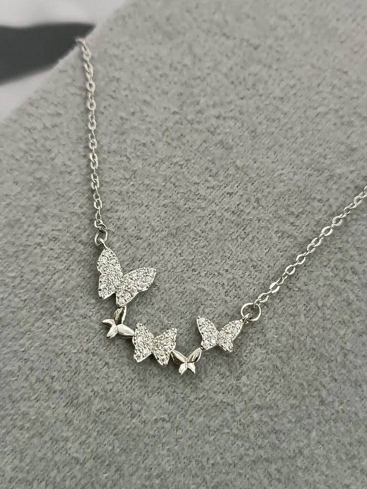 گردنبند زنانه طرح پروانه رنگ نقره ای نگین دار: جنس استیل با کیفیت ضد حساسیت و رنگ ثابت شیک و سبک ظریف و براق