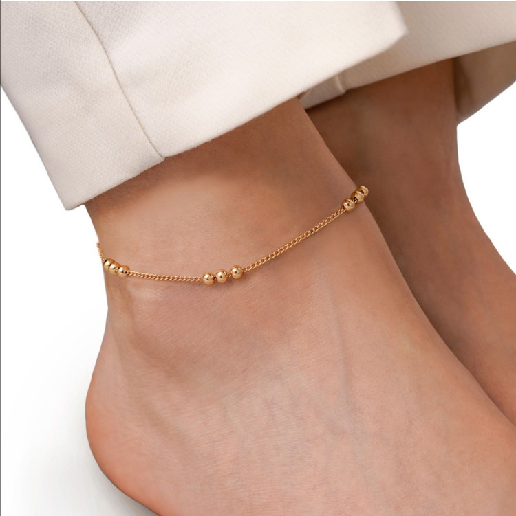 پابند زنانه مدل توپی رنگ طلایی جنس استیل با کیفیت ضد حساسیت و رنگ ثابت است