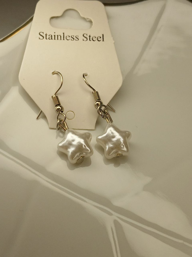 گوشواره زنانه طرح ستاره مروارید باروک: جنس استیل با کیفیت ضد حساسیت و رنگ ثابت