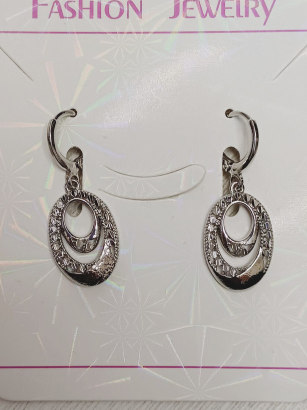گوشواره زنانه طرح بیضی رنگ نقره ای جنس استیل با کیفیت تراش خورده