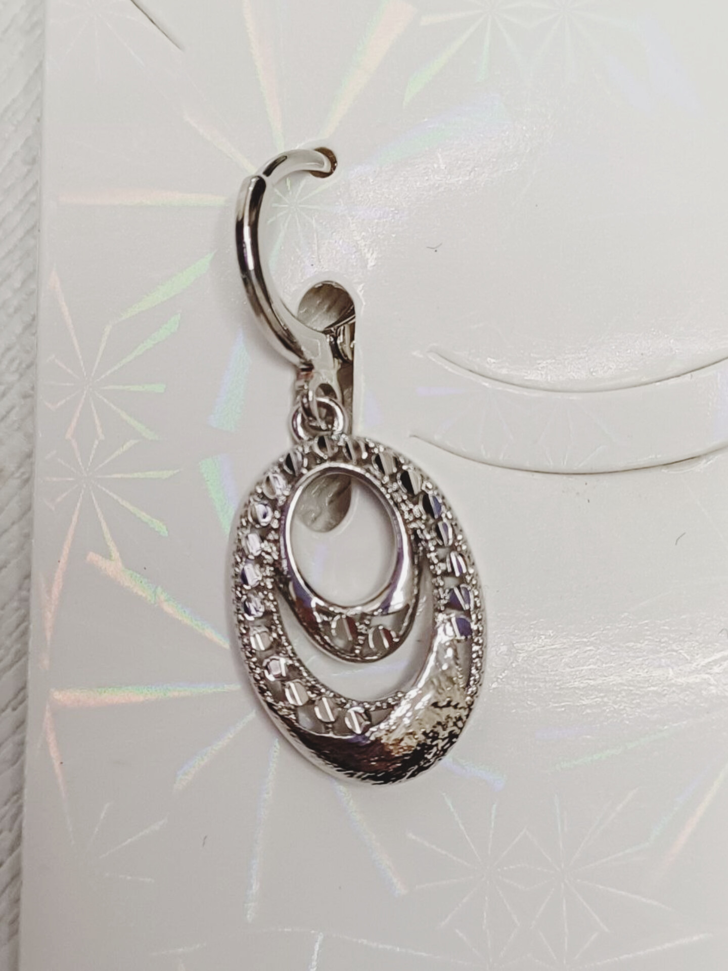 گوشواره زنانه طرح بیضی رنگ نقره ای تراش خورده: جنس استیل با کیفیت ضد حساسیت و رنگ ثابت