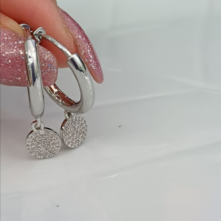 گوشواره زنانه طرح حلقه ای قفل کلیپسی نقره ای نگین دار: جنس استیل با کیفیت ضد حساسیت و رنگ ثابت