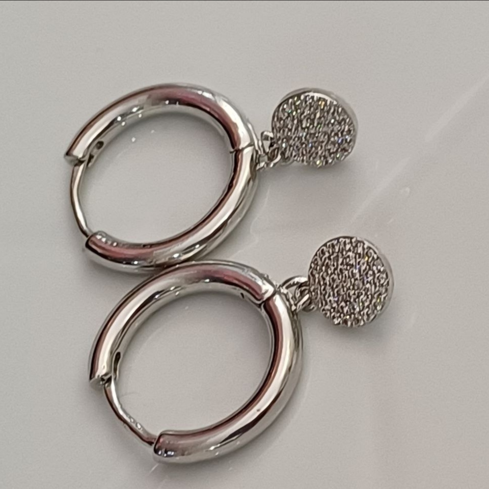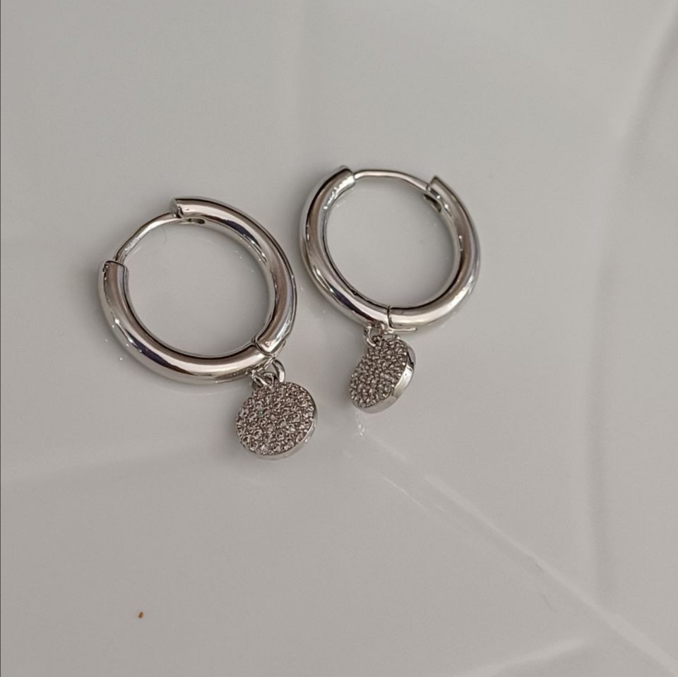 گوشواره زنانه طرح حلقه ای قفل کلیپسی نقره ای نگین دار: جنس استیل با کیفیت ضد حساسیت و رنگ ثابت