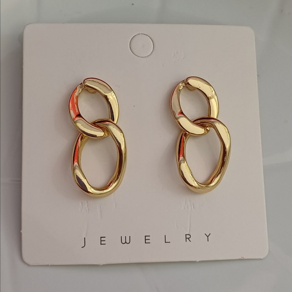 گوشواره طرح کارتیر رنگ طلایی: جنس استیل با کیفیت ضد حساسیت و رنگ ثابت