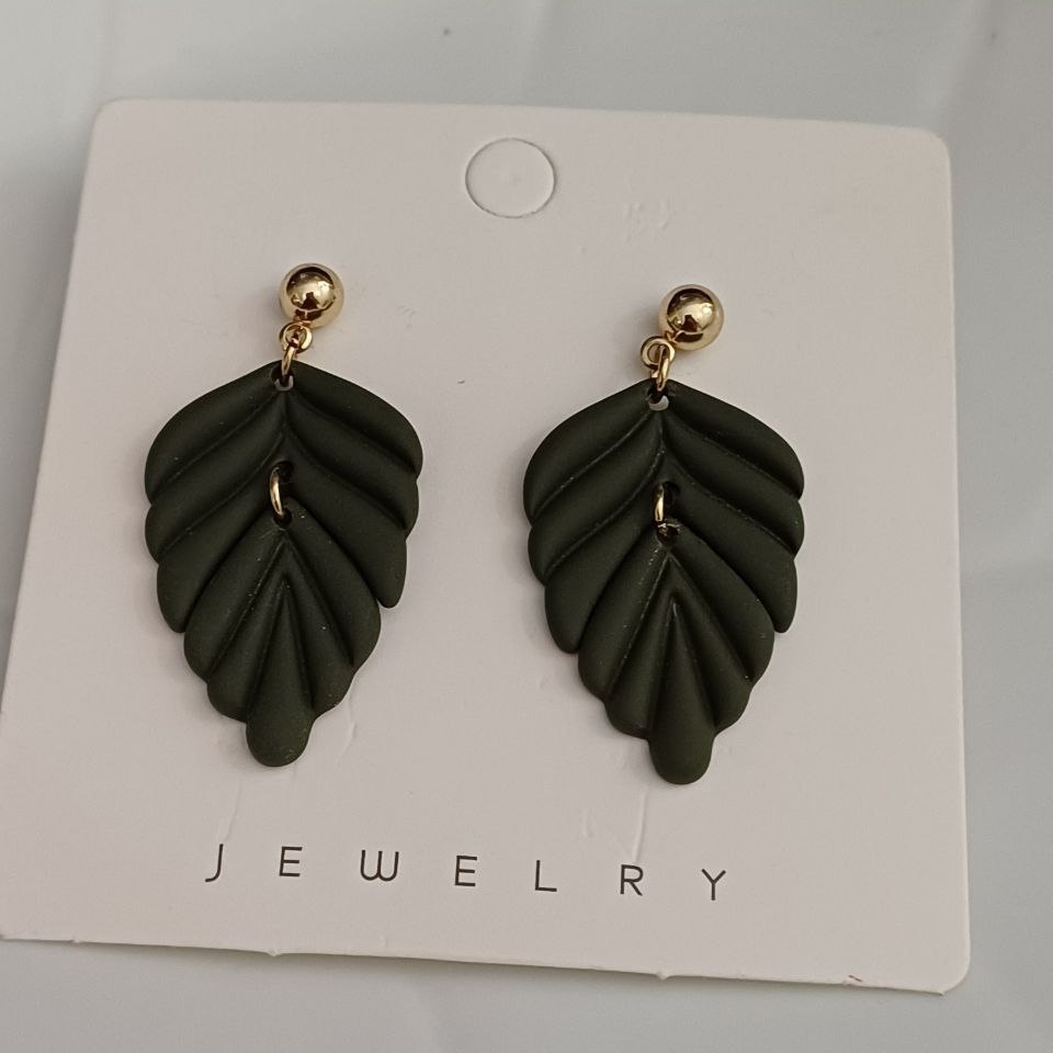 گوشواره زنانه طرح برگ سبز رنگ طلایی: جنس استیل با کیفیت ضد حساسیت و رنگ ثابت