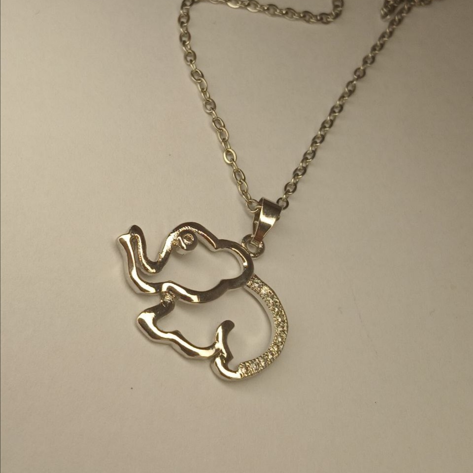 گردنبند زنانه مدل فیل رنگ نقره ای جنس استیل با کیفیت ضد حساسیت و رنگ ثابت متریال درجه 1