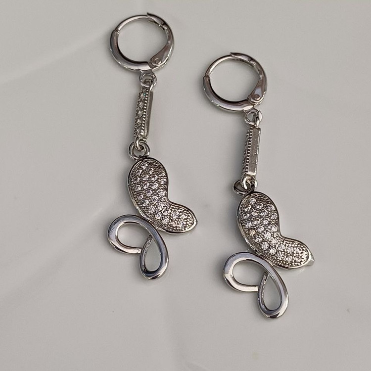 گوشواره قفل کلیپسی مدل پروانه رنگ نقره ای نگین دار کریستالی جنس استیل با کیفیت ضد حساسیت و رنگ ثابت متریال درجه 1