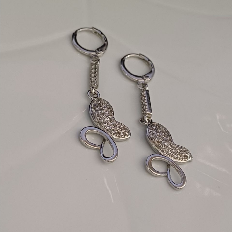 گوشواره قفل کلیپسی مدل پروانه رنگ نقره ای نگین دار کریستالی: جنس استیل با کیفیت ضد حساسیت و رنگ ثابت
