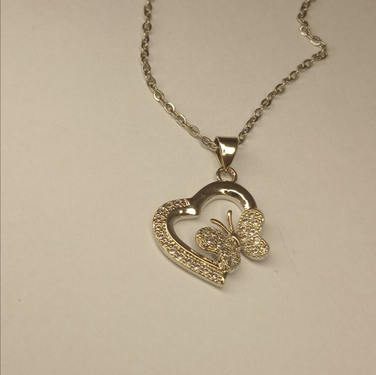گردنبند مدل قلب و پروانه رنگ نقره ای جنس استیل با کیفیت ضد حساسیت و رنگ ثابت متریال درجه 1