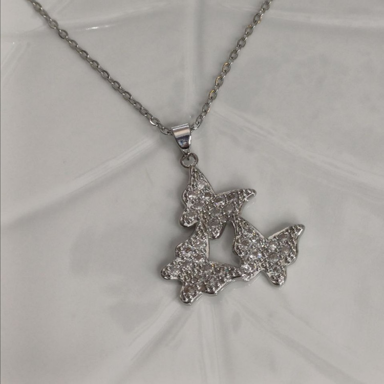 گردنبند مدل 3 پروانه رنگ نقره ای نگین دار کریستالی: جنس استیل با کیفیت ضد حساسیت و رنگ ثابت