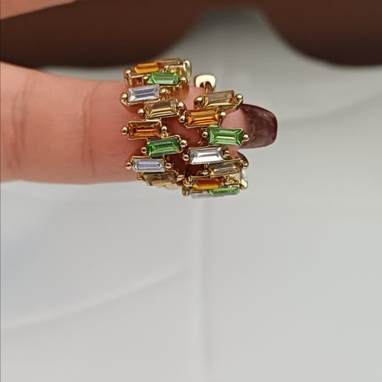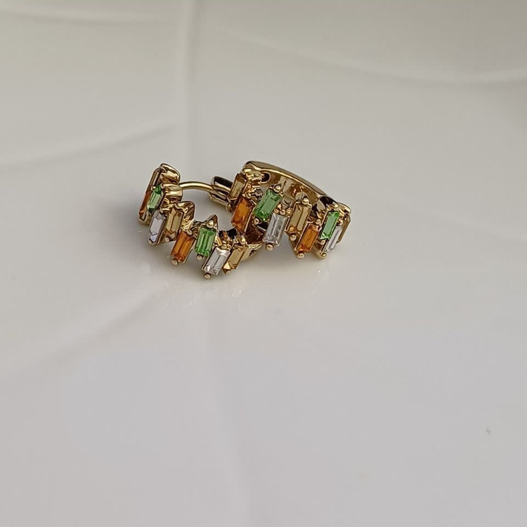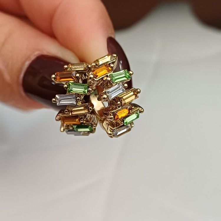 گوشواره قفل کلیپسی نگین دار کریستالی رنگی رنگ طلایی: جنس استیل با کیفیت ضد حساسیت و رنگ ثابت