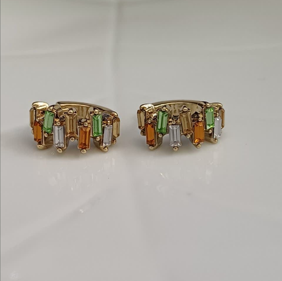 گوشواره قفل کلیپسی نگین دار کریستالی رنگی رنگ طلایی: جنس استیل با کیفیت ضد حساسیت و رنگ ثابت