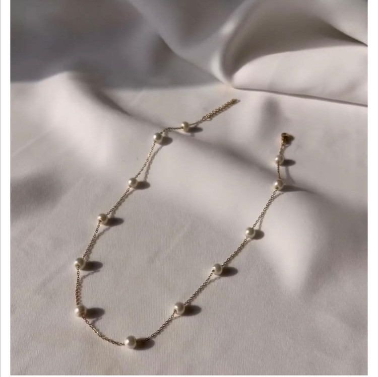 گردنبند زنجیری مروارید رنگ طلایی: ضد حساسیت و رنگ ثابت متریال درجه 1 جنس استیل با کیفیت و بادوام، مروارید پوست نمیشه