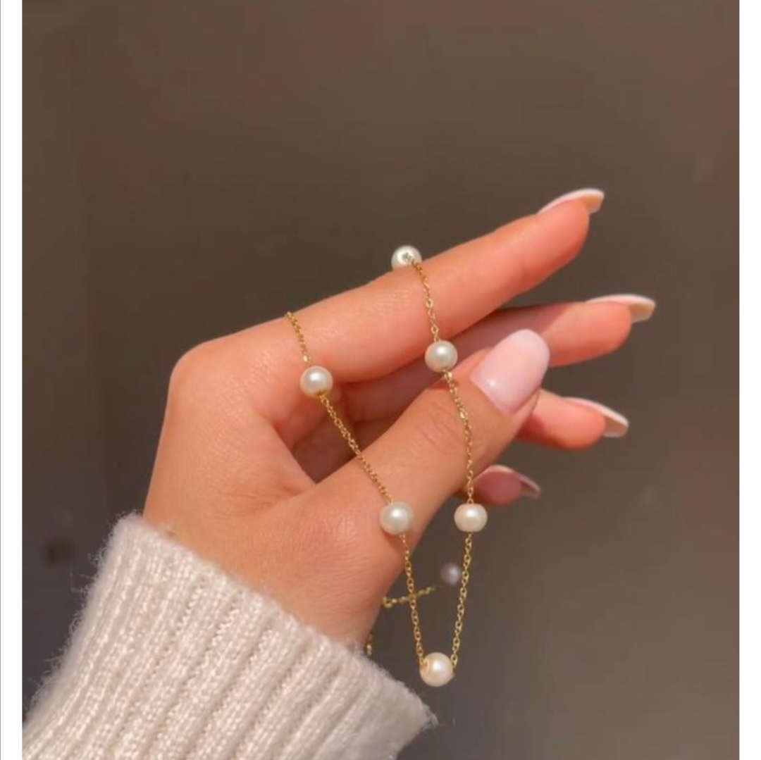 گردنبند زنجیری مروارید رنگ طلایی: ضد حساسیت و رنگ ثابت متریال درجه 1 جنس استیل با کیفیت و بادوام، مروارید پوست نمیشه
