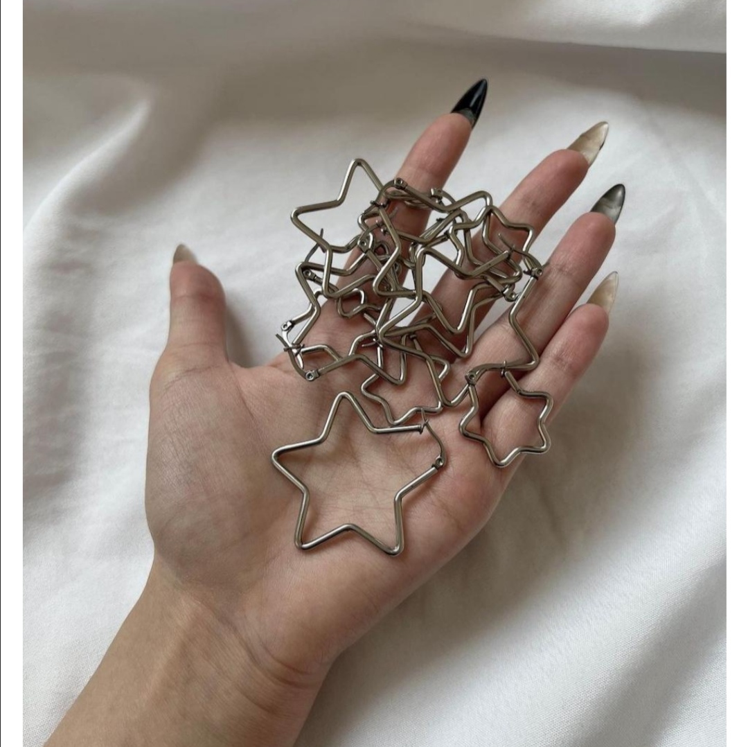 گوشواره زنانه مدل ستاره رنگ نقرهای 5سانت: جنس استیل با کیفیت ضد حساسیت و رنگ ثابت متریال درجه 1 بادوام باهاش برو استخر
