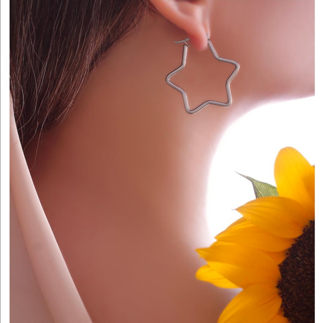 گوشواره زنانه مدل ستاره 5 سانت رنگ نقرهای جنس استیل با کیفیت ضد حساسیت و رنگ ثابت