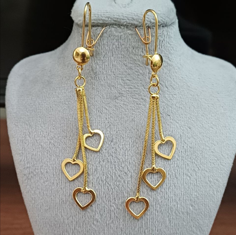 گوشواره آویزی طرح قلب رنگ طلایی: جنس استیل با کیفیت ضد حساسیت و رنگ ثابت متریال درجه 1 بادوام باهاش برو استخر مادامالعمر استفاده کن