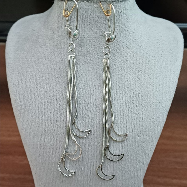گوشواره آویزی طرح ماه رنگ نقره ای جنس استیل با کیفیت ضد حساسیت و رنگ ثابت متریال درجه 1 بادوام باهاش برو استخر مادامالعمر استفاده کن
