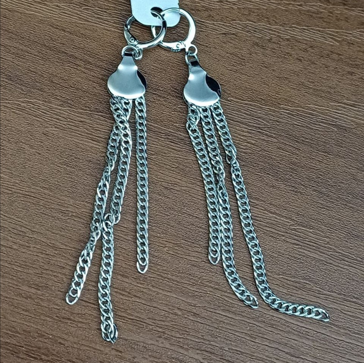 گوشواره آویزی طرح زنجیری رنگ نقره ای جنس استیل با کیفیت ضد حساسیت و رنگ ثابت متریال درجه 1