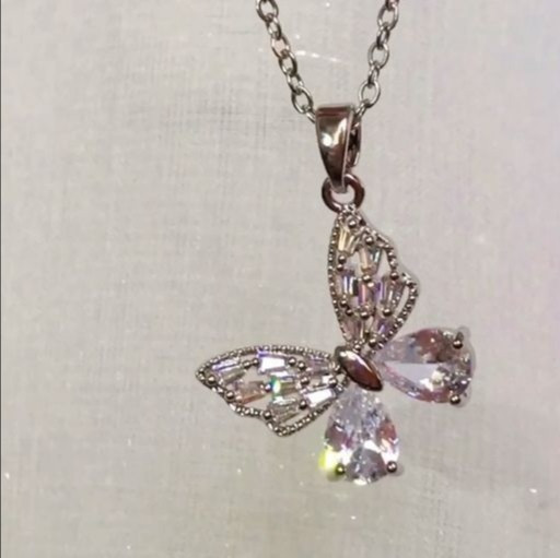 گردنبند زنانه طرح پروانه رنگ نقره ای نگین دار کریستالی: جنس استیل با کیفیت ضد حساسیت و رنگ ثابت متریال درجه 1
