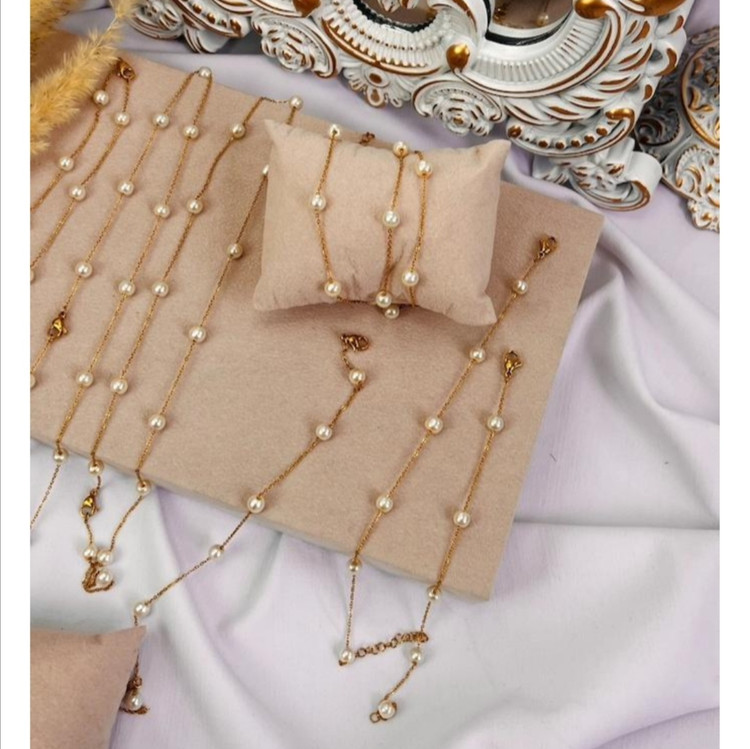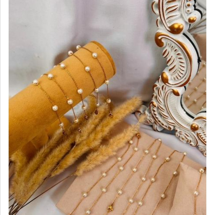 دستبند زنانه مدل مروارید رنگ طلایی مروارید پوست نمیشه ضد حساسیت و رنگ ثابت متریال درجه 1