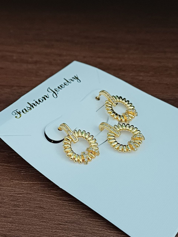 نیم ست گردنبند و گوشواره زنانه رنگ طلایی تراش خورده رنگ طلایی جنس استیل با کیفیت