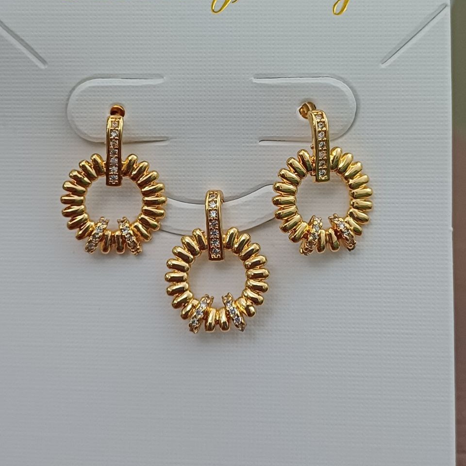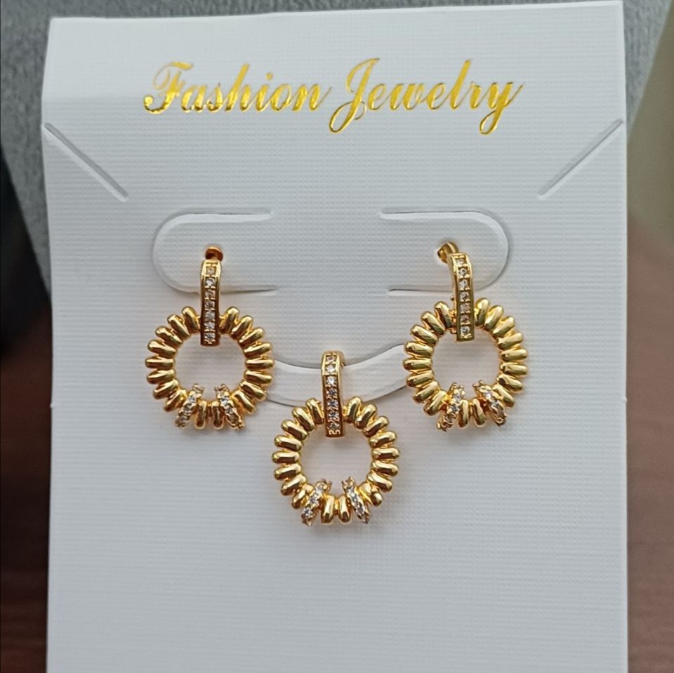 نیم ست گردنبند و گوشواره زنانه رنگ طلایی تراش خورده رنگ طلایی جنس استیل با کیفیت