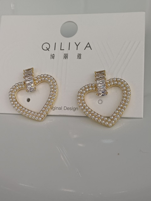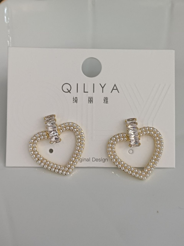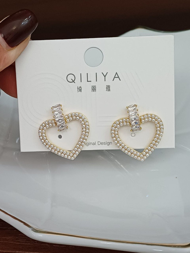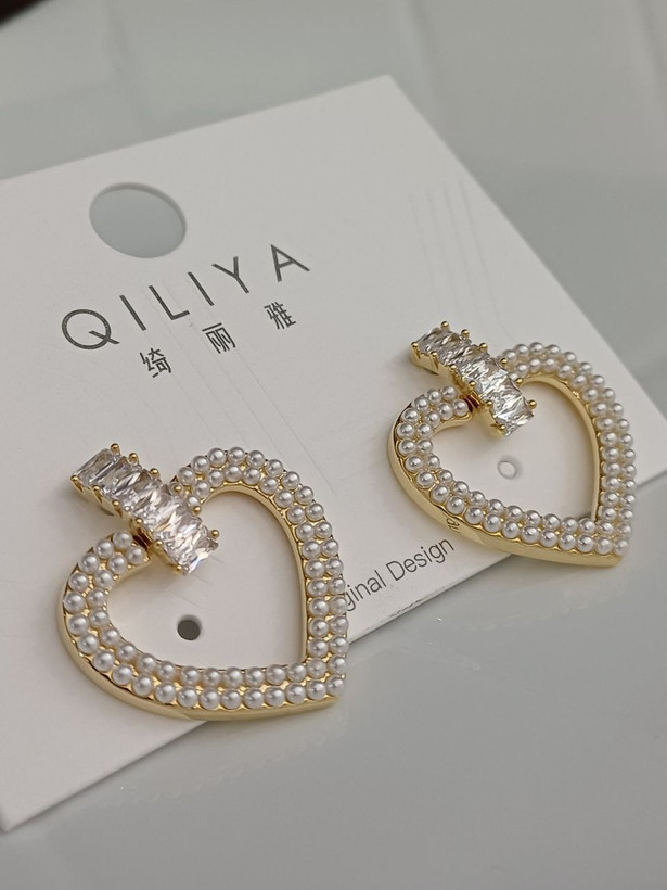 گوشواره زنانه میخی مدل قلب ترکیب نگین تنیسی و مروارید روکش آبکاری طلا بادوام مادامالعمر استفاده کن ضد حساسیت و رنگ ثابت متریال درجه 1