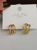 گوشواره زنانه مدل میخی طرح حلقه ای نگین دار کریستالی استیل طلایی بادوام خارجی