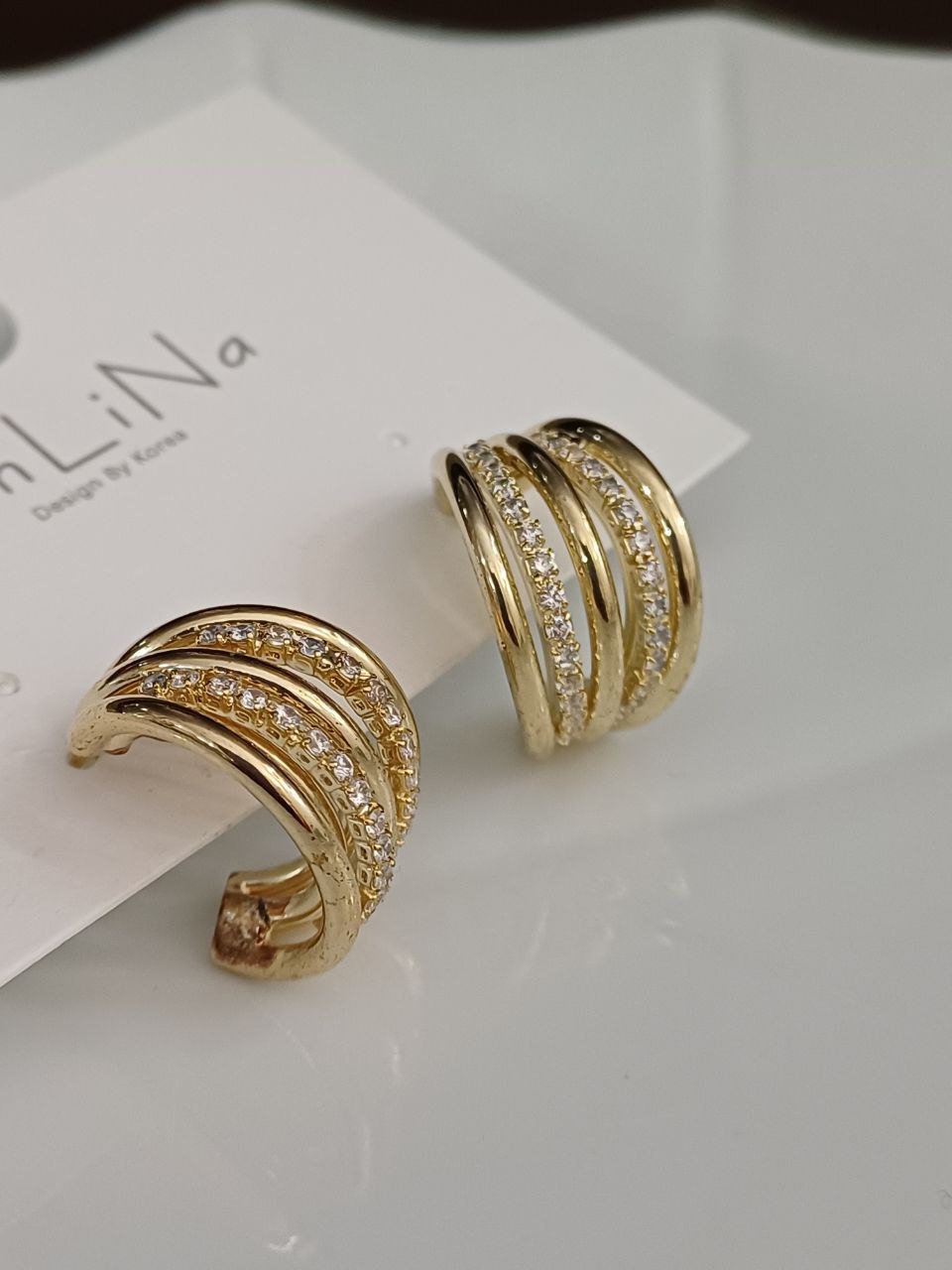 گوشواره زنانه مدل میخی طرح حلقه ای نگین دار کریستالی استیل طلایی بادوام خارجی