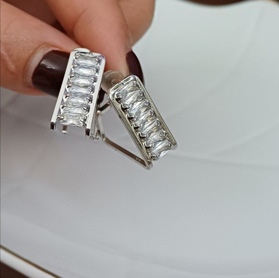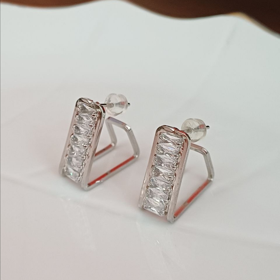 گوشواره زنانه میخی مدل تنیسی رنگ نقرهای جنس استیل با کیفیت ضد حساسیت و رنگ ثابت متریال درجه 1 بادوام مادامالعمر استفاده کن