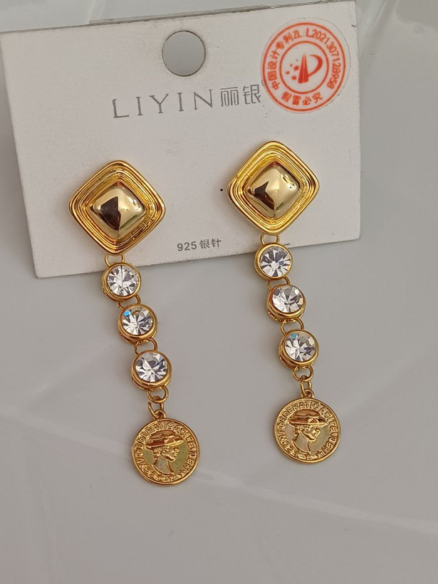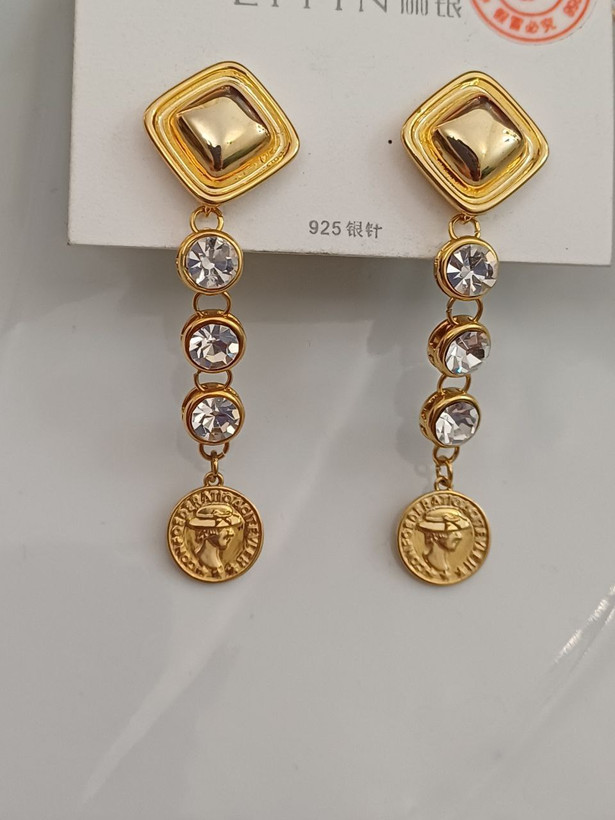 گوشواره زنانه مدل لوزی نگین دار کریستالی رنگ طلایی جنس استیل با کیفیت ضد حساسیت و رنگ ثابت متریال درجه 1 بادوام مادامالعمر استفاده کن