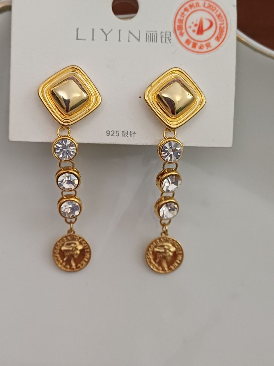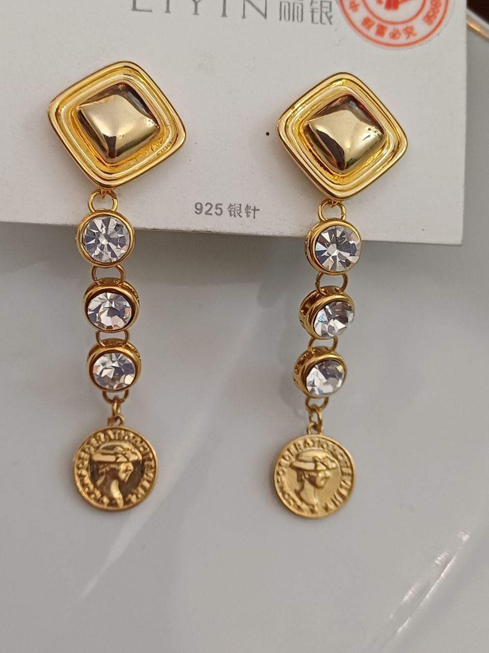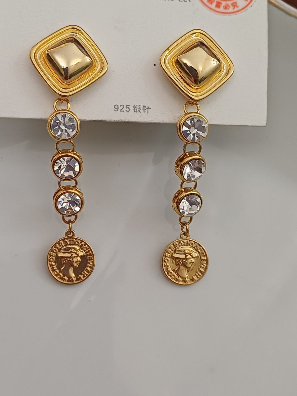 گوشواره زنانه مدل لوزی نگین دار کریستالی رنگ طلایی جنس استیل با کیفیت ضد حساسیت و رنگ ثابت متریال درجه 1 بادوام مادامالعمر استفاده کن
