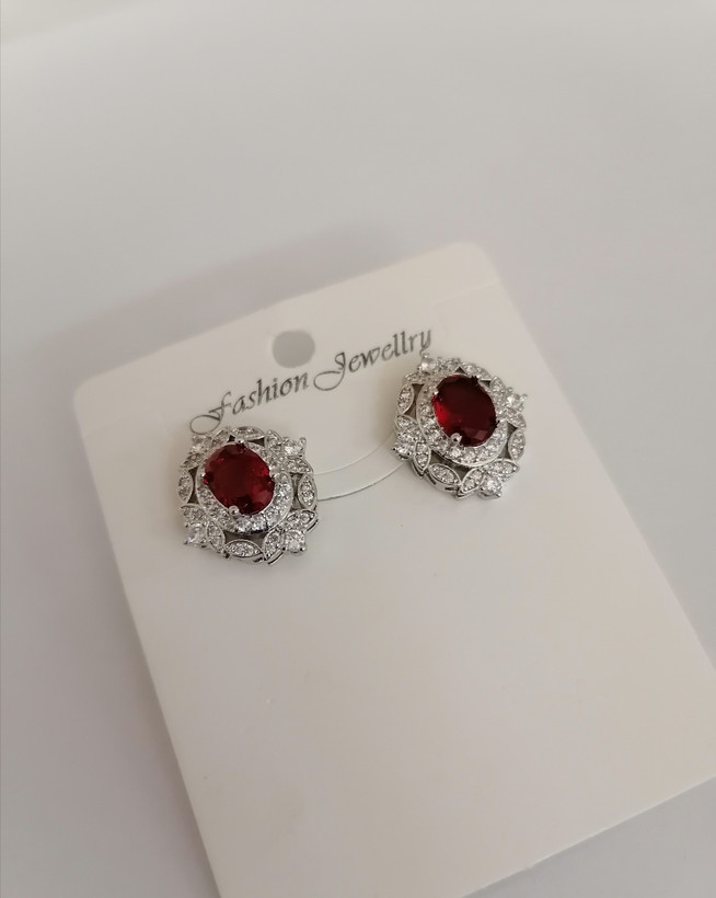 گوشواره زنانه طرح بیضی رنگ نقره ای نگین دار: جنس استیل با کیفیت ضد حساسیت و رنگ ثابت شیک و سبک ظریف و براق