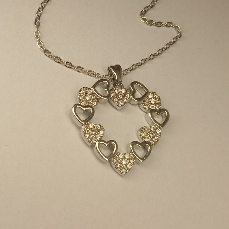 گردنبند زنانه مدل قلب نقره ای استیل نگین دار