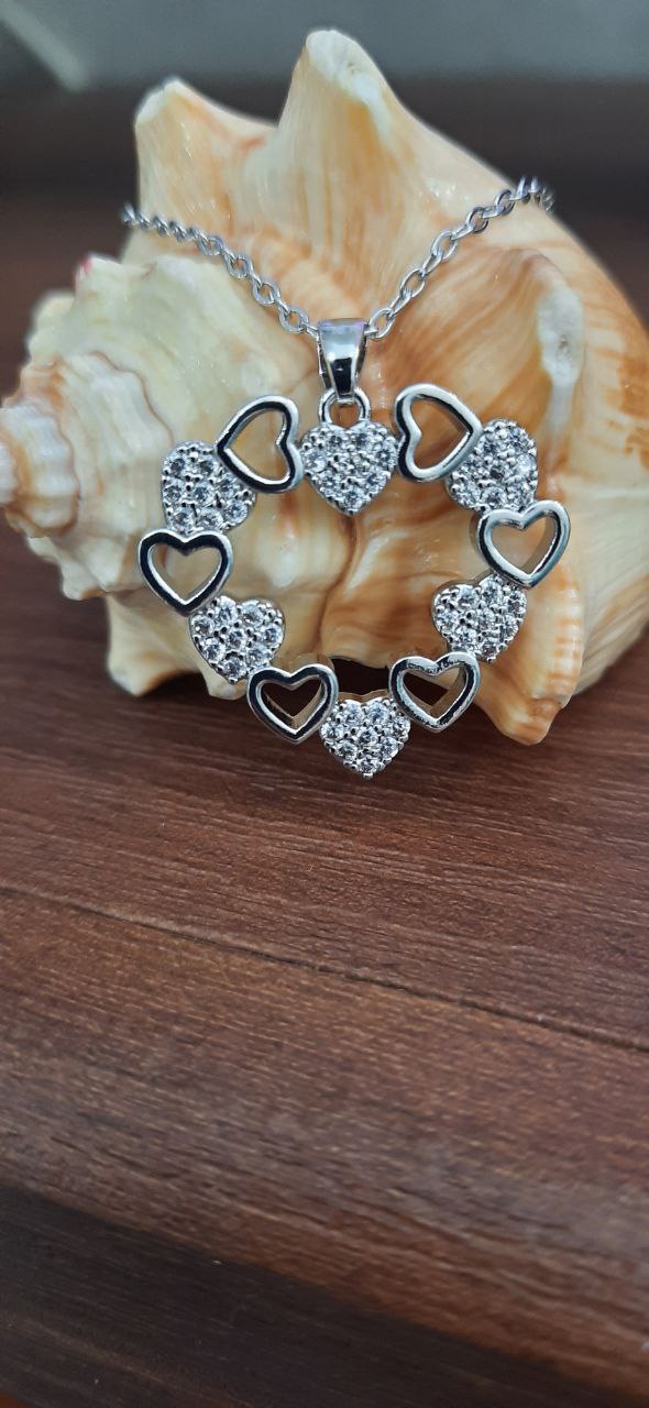 گردنبند زنانه مدل قلب نقره ای استیل نگین دار
