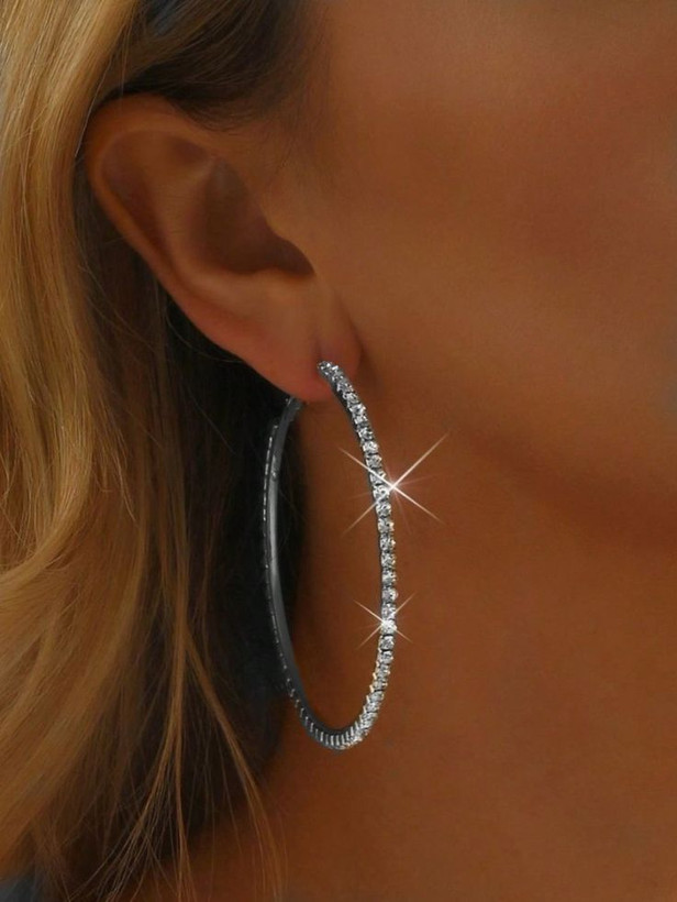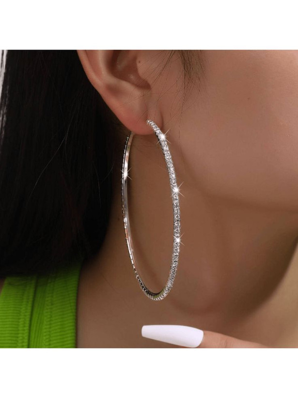 گوشواره حلقه ای زنانه نقرهای نگین دار: جنس استیل با کیفیت ضد حساسیت و رنگ ثابت شیک و سبک ظریف و براق